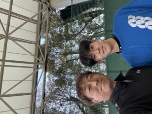 今日はレッスンしていたら隣のコートで海星高校が練習しており